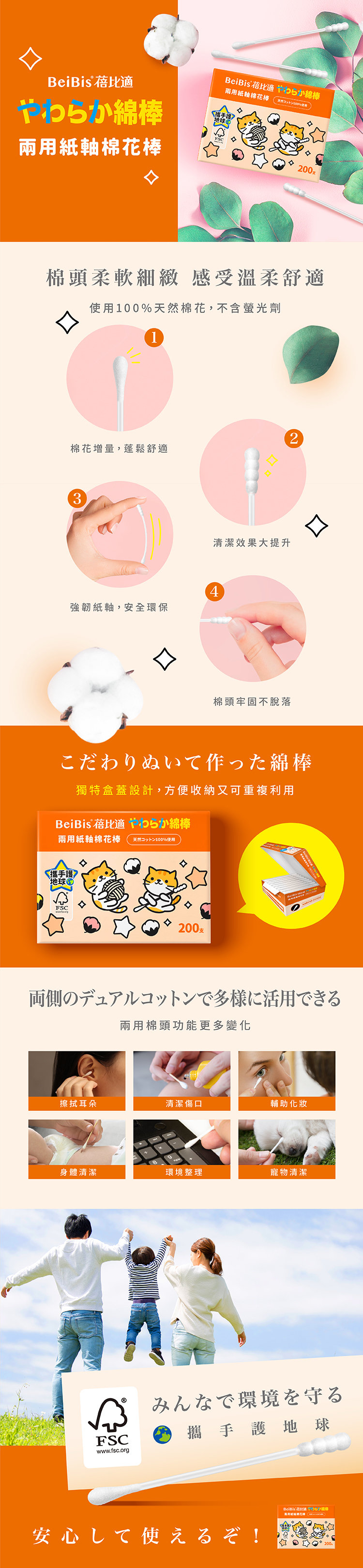 | 商品名稱 | 【蓓比適】兩用紙軸棉花棒(200支/盒) |