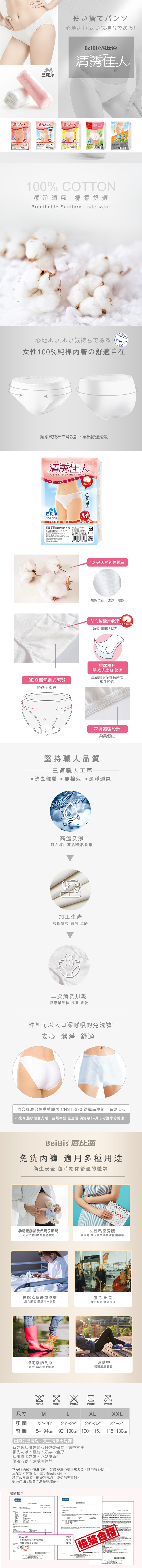 【蓓比適-清秀佳人】100%純棉透氣舒適 女性三角免洗內褲M-XL(5件/包x12包)