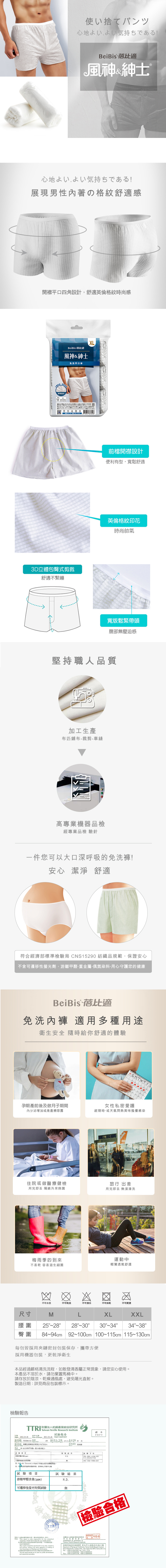 【蓓比適-風神紳士】舒適英倫灰色格紋 男性開襟四角平口免洗褲L-XXL(3件x12包)
