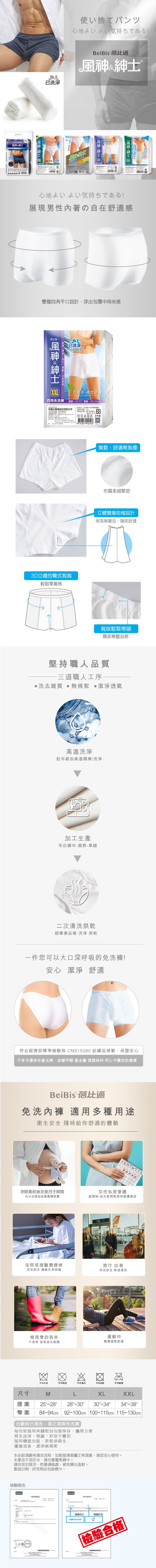 【蓓比適-風神紳士】舒適雙襠片 男性平口四角免洗內褲M-XXL(3件x12包)